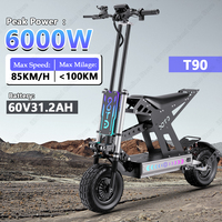 OOTD T90 E Scooter 6000W Motor 60V31.2AH Battery Hydraulic Brakes 100KM Range 85KM/H Speed Scooter Electric 13” Tire E Scoote $1523.92
