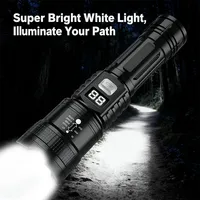 Powerful LED Flashlight Battery Display USB Rechargeable Light Telescopic Zoom Torch Lamp Outdoor Camping Fishing Lantern