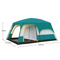 Outdoor two-bedroom and one-hall tent 8-10 people family double-layer rainproof camping outing big tent