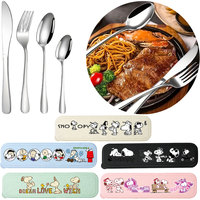 4pcs Snoopy Thin Portable Stainless Steel Cutlery Set with Storage Box Knife Forks Spoons Students Home Outdoor Picnic Tableware $2.64