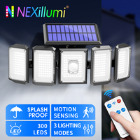 300 LEDs Motion Sensor Solar Outdoor Wall Lights with Remote, 3 Modes, Waterproof 2000mAh Five Heads Flood Lamp for Garden Yard