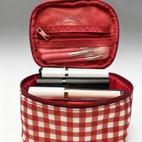 Oxford Cloth Red Plaid Makeup Bag Waterproof Large Capacity Toiletry Organizer Bag Multifunctional Nylon Cosmetic Bag Business $4.00
