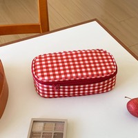 Oxford Cloth Red Plaid Makeup Bag Waterproof Large Capacity Toiletry Organizer Bag Multifunctional Nylon Cosmetic Bag Business $3.70