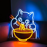 Cut Cat Neon Lights Sign Cat Eating Noodles Mutiple Color Night Lamp Customize Your Own Pet on Acrylic Board Bedroom Decor