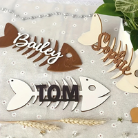 Fishbone-Shaped Pet ID Tag, Laser-Cut and Printed Double-Layered Wooden Craft for Cat & Dog Room Decorations – Creative Hanging