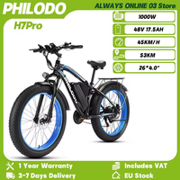 PHILODO H7PRO Electric Bike 1000W Motor 48V17.5AH Battery Mountain E Bike Adult 26*4 Inch Fat Tire All-terrain Electric Bicycle $1267.50