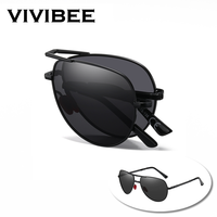 VIVIBEE Metal Pilot Black Folding Sunglasses Polarized Men Titanium Shades Women Aviation UV400 Designer Mirror Blue Sun Glasses $6.67