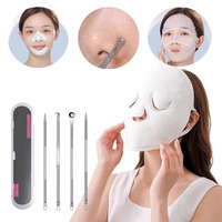 5pcs Blackhead Acne Removal Tools Set Reusable Hot Compress Face Towel Stainless Steel Acne Clip Pimple Needle Skin Care Tools