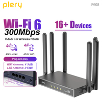 PLERY R605 4G LTE WiFi Router with Nano SIM Card Slot 300Mbps 4 External Antennas Booster 2.4G WiFi6 Repeater Long Range WiFi Extender