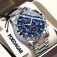 POEDAGAR Luxury Men Quartz Watch Waterproof Luminous Sport Watches Date Week Stainless Steel Male Wristwatch – Blue