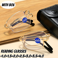 2024 Luxury Mini Folding Portable Reading Glasses Ultra Light HD Eyeglasses for Elderly Anti Blue Light Presbyopia Glasses $5.47