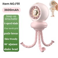 Portable Baby Stroller Clip Fan USB Rechargeable 3600mAh With Light 4 Speed Handheld Stand Outdoor Electric Mini Fan Octopus $29.95