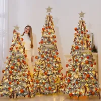Folding Christmas Tree Portable Flocked PVC Decor Expandable Large Holiday ornaments Home Realistic Dense Xmas Tree with Stand $45.00