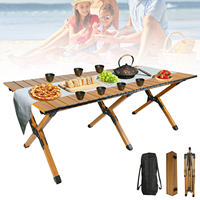 120*60cm Outdoor Folding Egg Roll Table Portable Foldable Camping Picnic Barbecue Wood Desk for Hiking Self-driving Tour Table $126.20