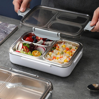 WORTHBUY 3/4 Grids Portable Square Divided Bento Lunch Box With Tableware Sealed Microwave 304 Stainless Steel Lunch Container $11.93