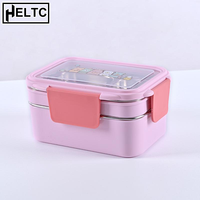 WORTHBUY Microwave Lunch Box Kids Student Portable Plastic Divided Bento Box Double Layer Food Container Sealed Fruit Salad Box $4.37