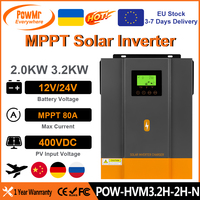 PowMr 3.2KW 2KW 1.5KW 1KW Hybrid Solar Inverter 12V 24V Battery to 230VAC Pure Sine Wave Output With MPPT 80A Solar Controller $190.01