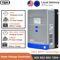 Y&H MPPT Solar Charge Controller 40A 60A 80A 100A LCD Display 12V/24V36V/48V Battery Regulator For AGM, Gel, Flooded and Lithium $54.78