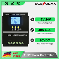 Ecgsolax 30A 40A 50A 60A 100A Mppt Solar Charge Controller 12V 24V Auto Solar Regulator with Lcd Max Pv 50Vdc Solar Controller $16.92
