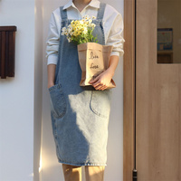 Vintage Denim Apron Cotton Canvas Adjustable Waist Stain-Resistant Apron Premium Machine Washable Bib Apron