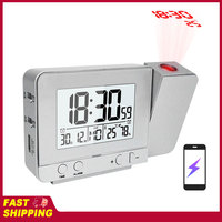Multifunctional Projection Clock Time Temperature Digital Display Dual Clock LED Screen Backlit USB Powered Projector Clock
