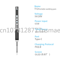 ABHZ-PTS100 T12 5-20V PD65W Portable Electric Soldering Iron Metal Body Temperature Adjustable Solder Welding Station $26.64