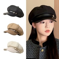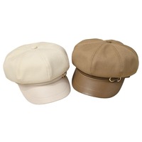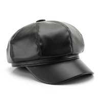 Banggood Design PU Leather Solid Color Outdoor Keep Warm Forward Hat Beret Hat – Coffee