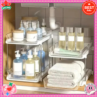 2 Tier Pull Out Under Sink Countertop Shelf Slide Cabinet Rack Organizer Bedroom Bathroom Cosmetic Storage Rack Kitchen Supplies $26.21