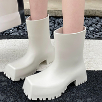 Brand Designer Rain Boots Women Non-slip Square Toe Fashion Short Shoes Female New 2025 Straight Waterproof Platform Women Boots $37.32