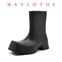 New Fashion Square Toe Thick Sole Rain Boots for Men and Women Anti-Slip Waterproof Work Wear Boots Brand Design Couple Shoes $22.17