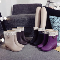 Korean Style Wedges Mid Tube Rain Shoes Women Autumn Winter Fashion Warm Anti Slip Rainboots Woman Waterproof Boots $13.86
