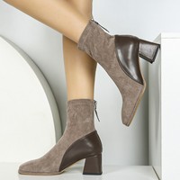 Women’s Rubber Boots Zipper Shoes Boots-Women Winter Footwear Rain Ankle Autumn 2026 High Heel Ladies Square Toe Rome Flock Mixe $33.40