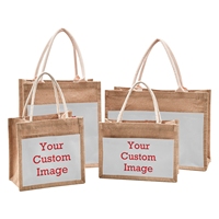 Portable Burlap Jute Shopping Bag Handbag Handles Tote Retro DIY Bag Musical Custom pattern Handbag Women Multi-size Beach Bag $15.94