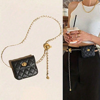Retro classic small gold ball waist chain women’s waist bag, small diamond design unique small exquisite portable waist bag,