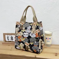 Fashion Fashionable Top-handle Bag with Cute Cat Pattern Portable Mommy Bag for Women Retro Art Hand Bag Shopping