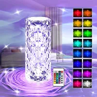 RGB Crystal Table Lamp 3 Color USB Powered LED Modern Bedside Lamp with Wire Switch Control Nightstand Lamps Energy-saving Acrylic Transparent Table Light Ornaments for Bedrooms Home – Rechargeable RGB
