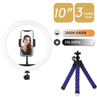 10-12 inch LED Selfie Ring Light Photography Round Fill Lighting With Adjustable Tripod Phone Stand for Makeup Tiktok Video Live $6.06