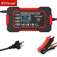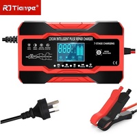 RJtianye European Standard 12V 6A Smart Pulse Repair Charger for SUV Motorcycle Charger LED Screen Display – Blue