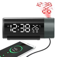 Projection Alarm Clock LED Projector Thermometer Desk Bedroom Bedside 180° Rotation Digital Dual Alarm Clock USB Phone Charge $15.08