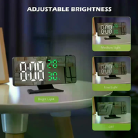 Date/Temperature Display Projection Alarm Clock 12/24H 180° Rotating Projection LED Digital Mirror Clock Large Screen $11.03