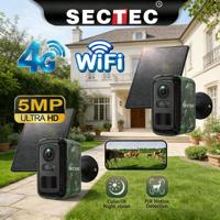 SECTEC 4G Solar Floodlight Camera 3MP HD Surveillance Cam Motion Detection Color Night Vision Two-way Audio IP66 Waterproof for Outdoor Security Monitoring – Black
