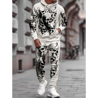 Hot Selling 3D Skull Print Men’s Casual Hoodie and Sweatpants Set for Casual Home and Street Fashion