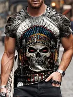 2023 Summer Men’s Printed Casual Crew Neck Short Sleeve T-Shirt Native Skull 3D Printed T Shirt