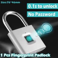 Smart Fingerprint Padlock 20 Fingerprints USB Rechargeable Door Lock Biometric Fingerprint Door Lock Zinc Alloy Smart Life Unlock – Silver