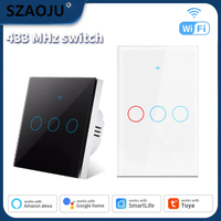 Tuya EU WiFi+RF433 Smart Remote control switch No Neutral Wire Required 1/2/3Gang Light Touch Switch Work with Alexa Google Home