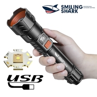 Portable Super Bright LED Flashlight SMILING SHARK USB Rechargeable With Hook Zoomable Torch Mergency Lantern New
