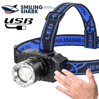 Smiling Shark TD0181 Powerful LED Sensor Headlight, Rechargeable Zoomable Headlamp,for Outdoor Camping, Hiking, Night Fishing