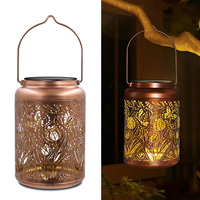 Solar Lanterns Outdoor Waterproof Garden Solar Light Hanging Decor Hollow Out Retro Metal Solar Lights Yard, Patio, Garden Decor