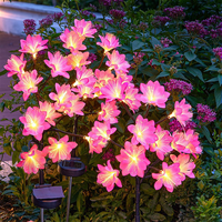 ABLG Solar Lights Garden Ornaments Outdoor Flower Garden Lights Peach Blossom Landscape Lighting Pathway Stake for the Patio