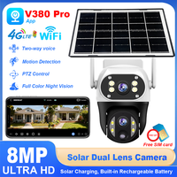 V380 8MP Solar Security Camera Outdoor WiFi Wireless Dual Lens IP Camera Night Vision Motion Tracking 4G CCTV Waterproof PTZ $55.07